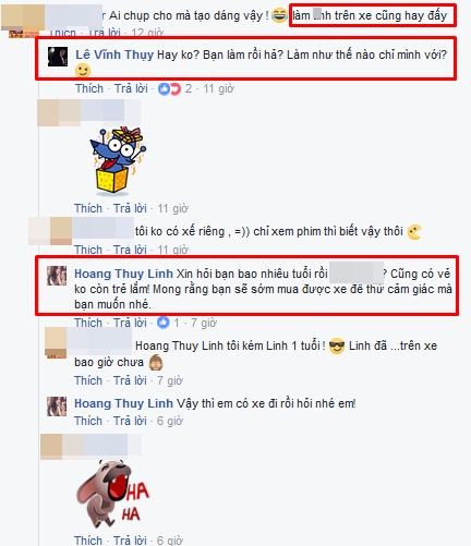 "Xin hỏi bạn bao nhiêu tuổi rồi? Cũng có vẻ không còn trẻ lắm! Mong rằng bạn sẽ sớm mua được xe để thử cảm giác mà bạn muốn nhé", lời đáp của Hoàng Thùy Linh.