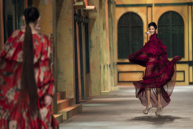 Không khí tại sân khấu bùng nổ khi H'Hen Niê xuất hiện với vai trò vedette, ngay sau màn diễn của Hoàng Yến. Cô tái hiện lại cú xoay váy từng ghi điểm tại đêm bán kết Hoa hậu Hoàn vũ 2018.