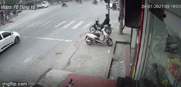 Theo người dân chứng kiến vụ việc cùng với hình ảnh camera ghi được, khi xe ôtô đang di chuyển với tốc độ bình thường qua ngã tư thì xe máy vượt đèn đỏ đi thẳng với tốc độ rất nhanh lao tới và tông mạnh vào phía sau xe ôtô.