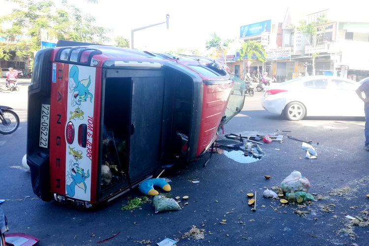 Cú tông mạnh khiến xe bán tải lăn nhiều vòng, va vào đuôi xe ô tô 4 chỗ đang chạy trên đường Nguyễn Tất Thành. Hậu quả là 3 người trên 2 xe bị thương được chuyển vào bệnh viện Bà Rịa cấp cứu. 2 phương tiện đều bị hư hỏng. Xe cứu thương dừng giữa ngã tư, đầu xe vỡ nát; ô tô bán tải lật nghiêng, kính vỡ, đồ đạc văng tung tóe.