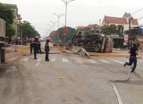 Theo thông tin ban đầu vào khoảng 5h sáng ngày 25/3, xe bồn chở xăng mang BKS 36C-089.97 (chưa rõ danh tính tài xế) lưu thông trên quốc lộ 1A theo hướng thành phố Vinh - thị xã Hoàng Mai (Nghệ An). Đến đoạn đường thuộc phường Quỳnh Thiện, chiếc xe mất lái tông vào dải phân cách, lật nghiêng.