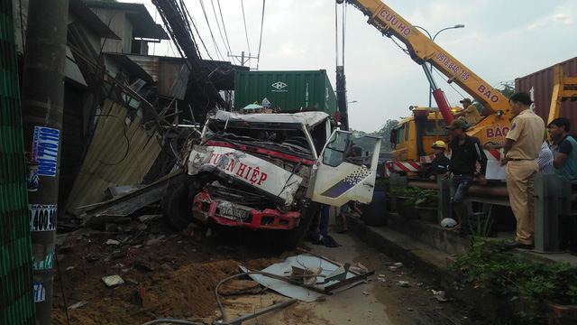 Rạng sáng 13/10, xe container mang BKS 51C-915.90 lưu thông trên đường Trần Văn Giàu, hướng TP HCM đi Long An. Đến gần chân cầu Bà Cua (thuộc xã Phạm Văn Hai, huyện Bình Chánh), xe bất ngờ lao lên vỉa hè, tông liên tiếp 6 căn nhà. Trong đó, 4 nhà hư hỏng nặng, tường gạch, cửa đổ sập.