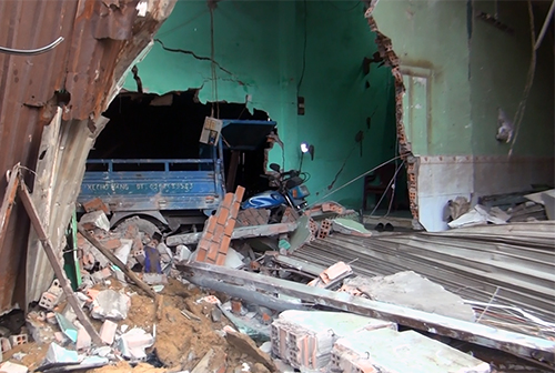 “Tôi đang ngủ thì bỗng nghe tiếng tông to lắm. Chạy ra xem thì thấy nát bét hết rồi, tường, cửa gì đổ sập hết. May mà không có ai bị gì” – anh Nam, 26 tuổi, sống gần hiện trường nói.