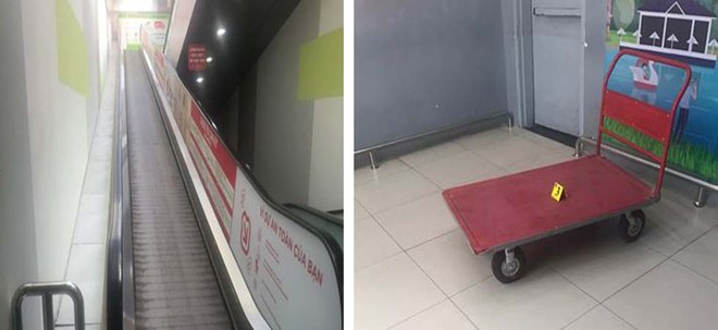 Khi tới cầu thang cuốn có chiều dài khoảng 10m, 2 người này đã để xe đẩy hàng trượt khỏi tầm tay, lao vun vút xuống phía dưới, tông trúng một người phụ nữ lớn tuổi lúc này đang đi dưới chân cầu thang.