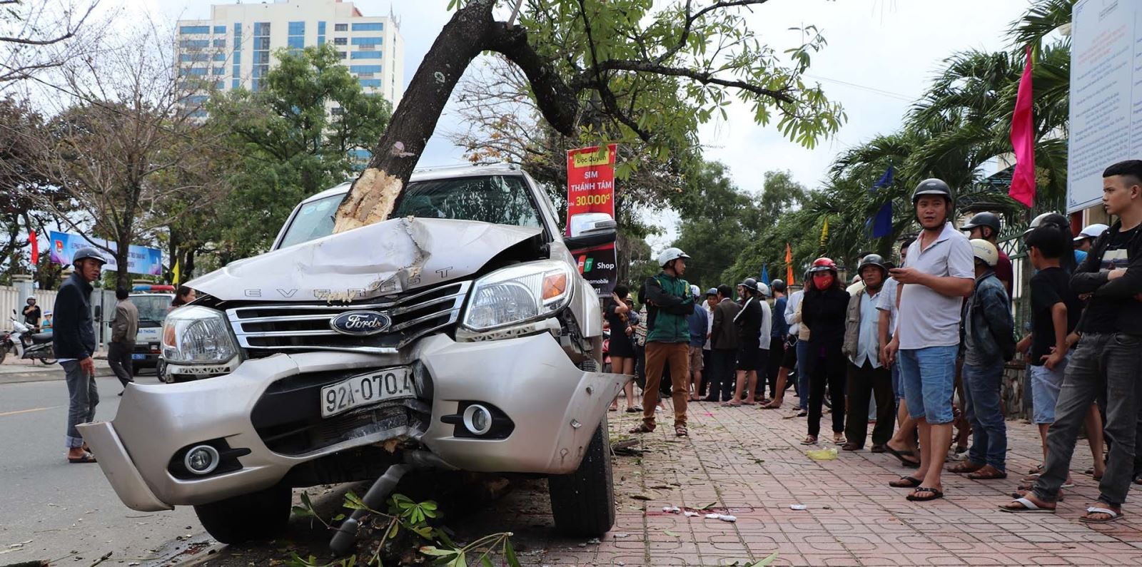 Đến địa điểm trước trường Cao đẳng nghề Quảng Nam, chiếc ô tô bất ngờ lao sang làn đường ngược chiều, tông trực diện vào một phụ nữ và bé trai đang đứng chờ xe buýt trên lề đường. Chiếc xe mất kiểm soát tiếp tục lao thêm một đoạn nữ, tông gãy một cây xanh bên đường rồi mới dừng lại.