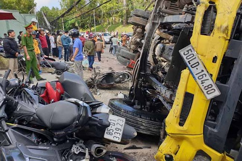 Tài xế và phụ xe vừa xuống khỏi thì chiếc xe bất ngờ trôi tự do khoảng 200m. Khi xe cách vòng xoay ngả 5 Đại học Đà Lạt khoảng 150m thì lao vào lề đường bên phải và lần lượt tông gãy đổ 2 trụ điện. Trước khi bị lật nằm nghiêng, xe tải còn tiếp tục nghiền nát hơn 10 xe máy của người dân đang dừng đỗ trên lề đường.