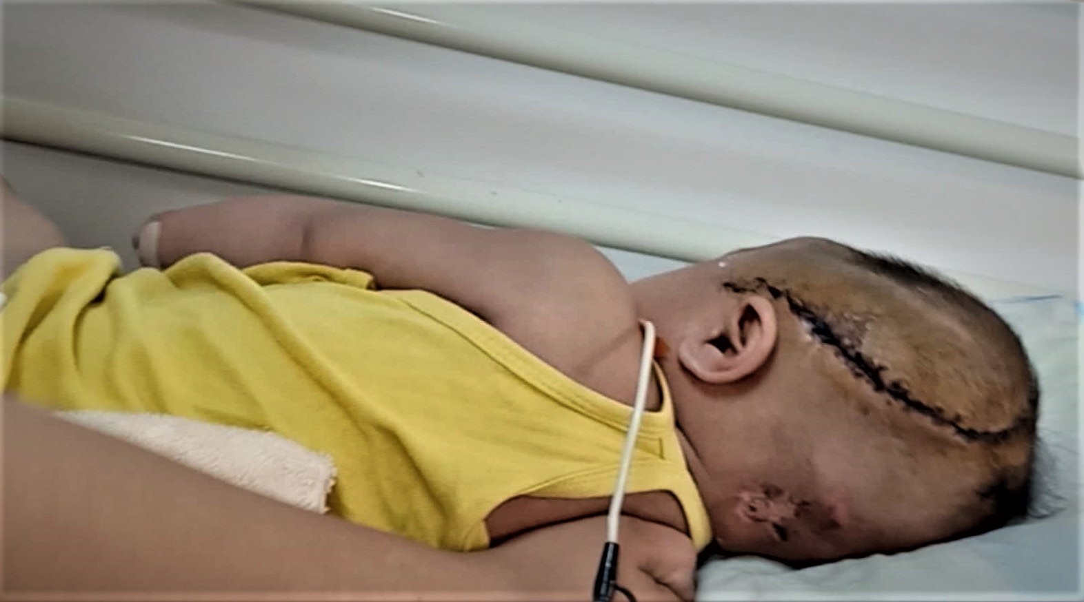 Ca mổ thành công nhưng bé vẫn hôn mê và nằm tại phòng hồi sức của bệnh viện. Phần sọ của bé phải gửi tại bệnh viện Phạm Ngọc Thạch.