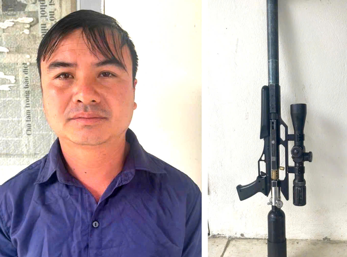 Tại cơ quan Công an, bước đầu người đàn ông này khai nhận tên là Lữ Văn Hoài (SN 1987, trú tại Bản Xầy, xã Trung Hạ, huyện Quan Sơn). Khoảng 8h sáng cùng ngày, Hoài sử dụng súng hơi (dài 91 cm, do Hoài đặt mua trên mạng xã hội) để bắn chim, trên đường về nhà thì bị lực lượng Công an phát hiện.